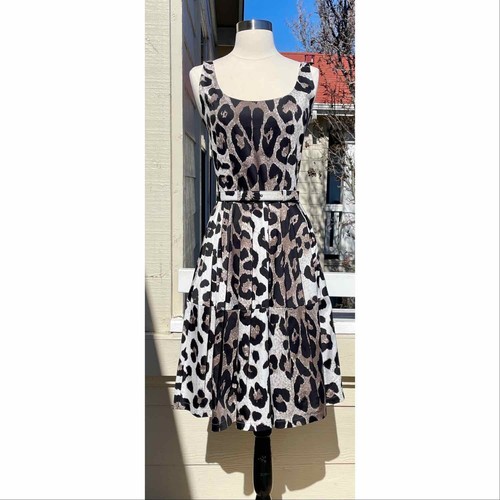 Samantha Sung Leopard Animal Print Dress Fit Flare Size 2 Belted Ebay